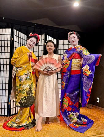 - Trải nghiệm xem show Geisha: Geisha là nghệ nhân giải trí truyền thống của Nhật Bản, được đào tạo bài bản để biểu diễn âm nhạc, múa, thơ ca và trò chuyện. Họ thường xuất hiện trong các buổi tiệc trà, sự kiện văn hóa và các khu phố giải trí. Để trở thành một geisha, người phụ nữ phải trải qua quá trình đào tạo bài bản và nghiêm ngặt kéo dài nhiều năm. Họ học cách chơi nhạc cụ truyền thống như shamisen, hát các bài hát truyền thống, múa điệu múa truyền thống, đồng thời học cách giao tiếp, ứng xử thanh lịch và nghệ thuật trò chuyện. Trang phục của geisha cũng rất cầu kỳ và tinh tế. Họ thường mặc kimono rực rỡ, trang điểm đậm và đội những chiếc lược cài tóc cao.