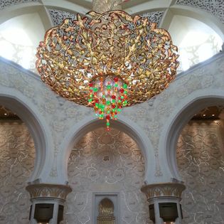 Sau bữa điểm tâm sáng, đoàn khởi hành đi tham quan Abu Dhabi – Thánh đường Hồi giáo Sheikh Zayed – niềm tự hào của Các Tiểu vương quốc Ả Rập Thống nhất. Đây là thánh đường xa hoa nhất thế giới, với những vật liệu xa xỉ như đá cẩm thạch trắng, pha lê màu Swarovski, thảm Ba Tư… Cả thánh đường có đến 82 mái vòm và 1.048 chiếc cột bên ngoài có hình cây chà là – loài cây đặc trưng của Trung Đông. Ngoài ra thánh đường còn có sức chứa đáng kinh ngạc với hơn 40.000 tín đồ cầu nguyện cùng một lúc.